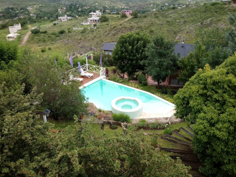 Son 5 cabañas totalmente equipadas.. 3 con capacidad para 4 personas,1 para cinco y otra para 6 personas con dos dormitorios.Construidas en un lote de 2436 mts, 30 mts de frente por 90 mts.de largo. El lugar cuenta con una piscina de 50.000 litros con hidromasaje, equipo de filtrado automático,e iluminacion .El predio esta parquizado con riego automático. El entorno es de una vista inmejorable..El frente tiene vista hacia el lago San Roque y el fondo hacia los gigantes y altas cumbres.